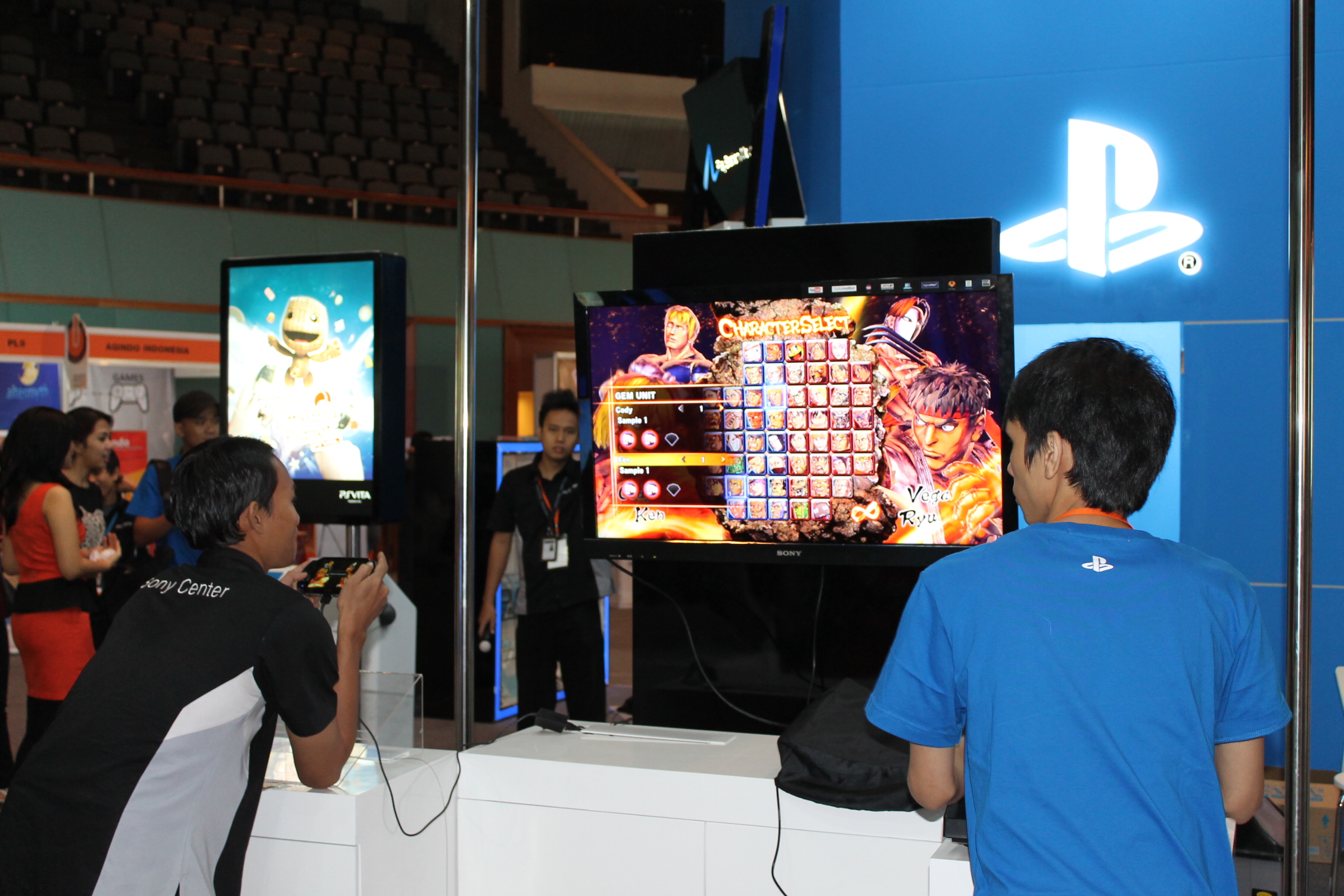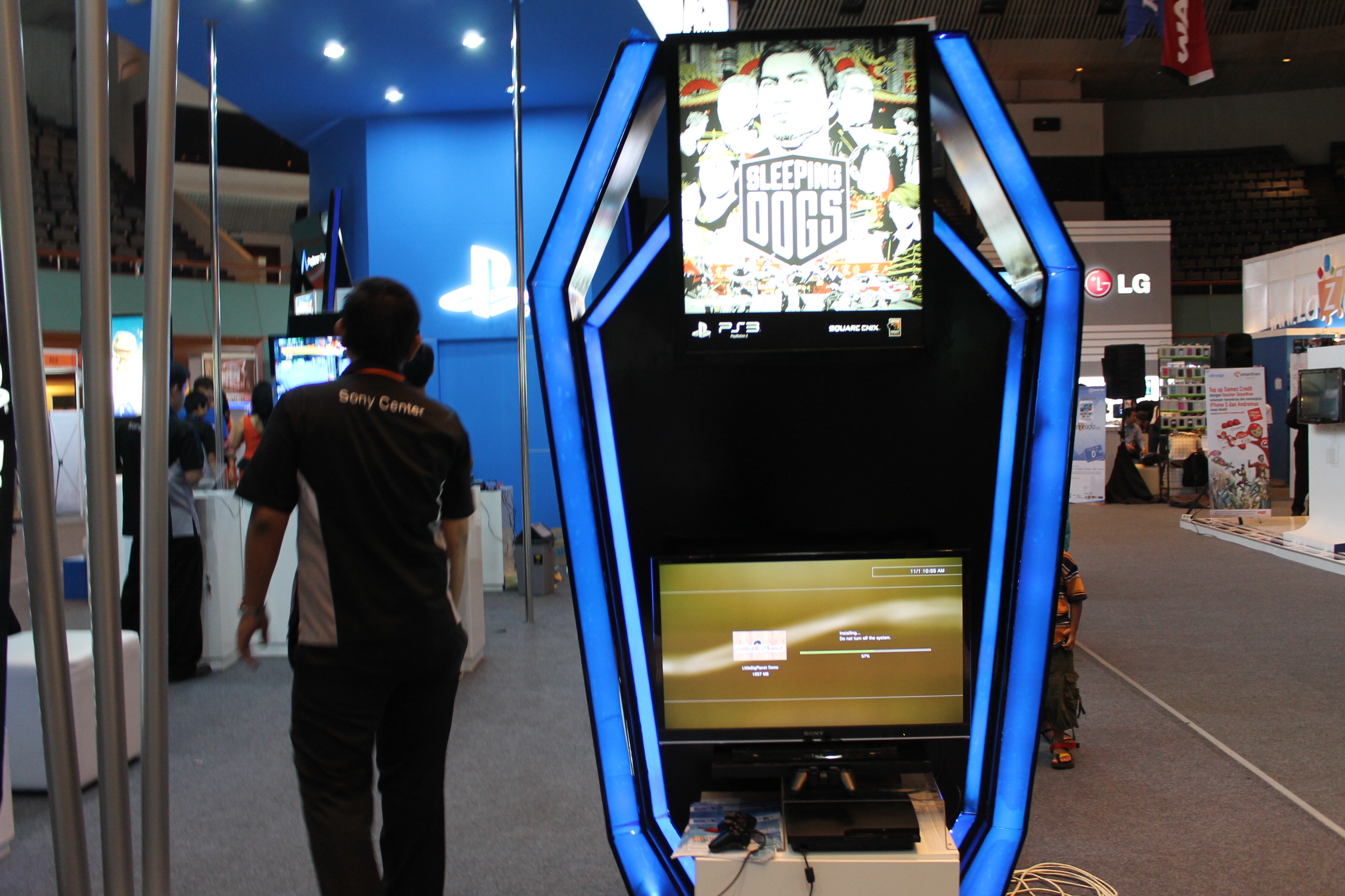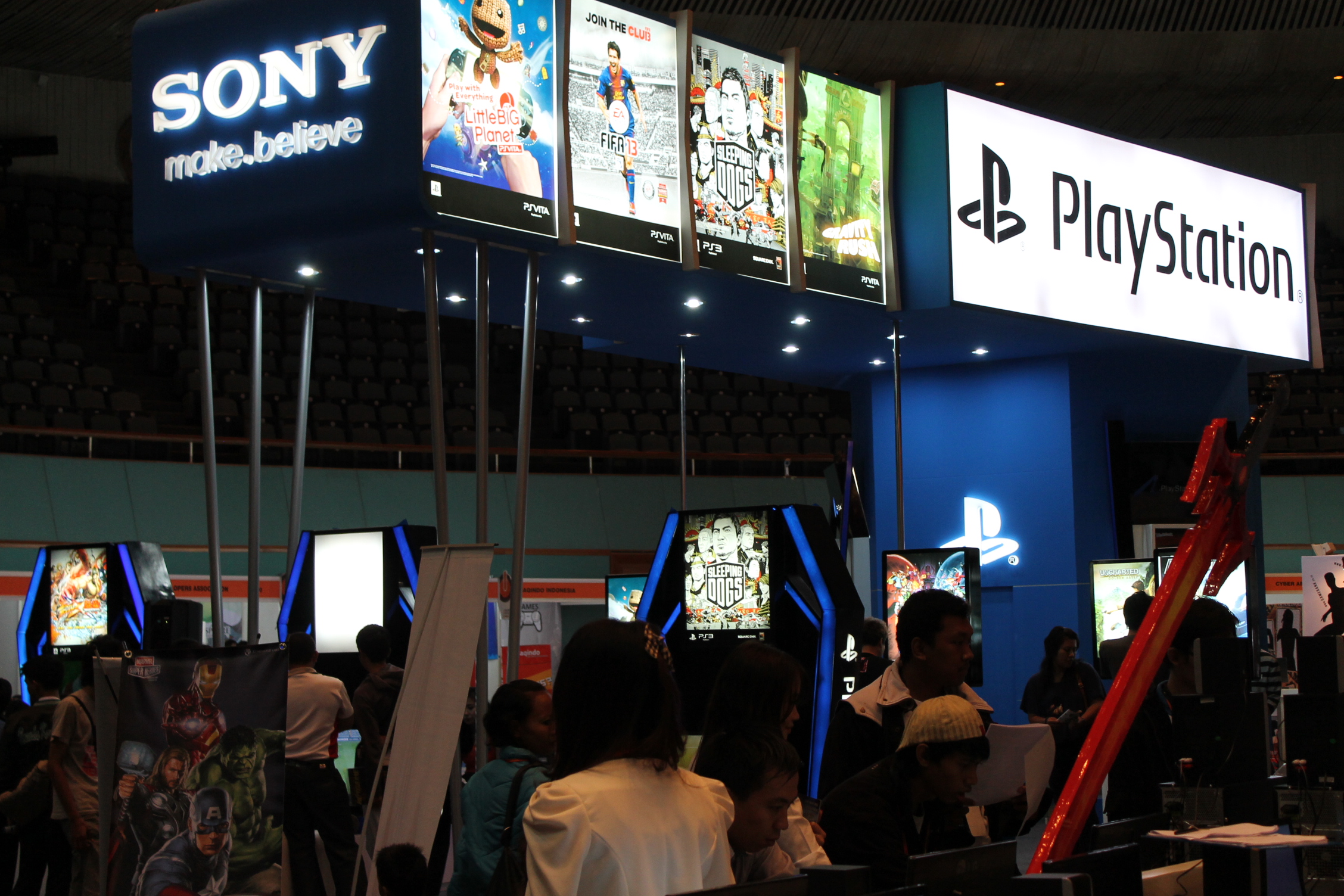 Untuk game Playstation 3 stand Sony disediakan : Sleeping Dogs, Street Fighter X Tekken, Little Big Plannet Karting, dan FIFA 13. Untuk game-game PS Vita diantaranya adalah Uncharted : Golden Abyss, Dynasty Warrior 7 : Xtreme Legend, Street Fighter X Tekken (versi PS Vita). Wah sangat banyak sekali bukan variasi gamenya tersebut? Saya sendiri saja nih sampai betah loh gamers dalam memainkan game dengan julukan GTA Asia yaitu Sleeping Dogs. Pokoknya Sleeping Dogs adalah game wajib main deh guys.