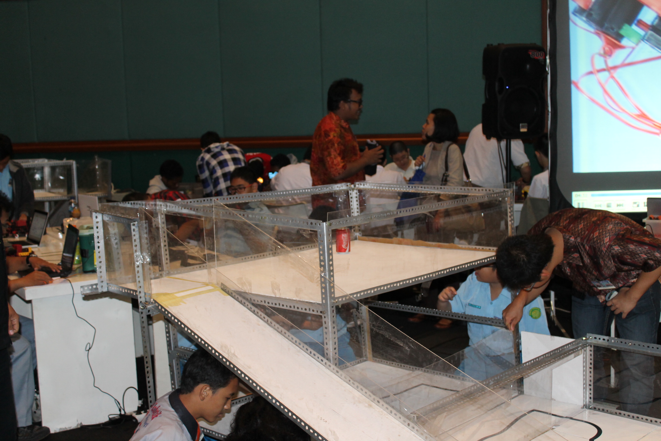 Dalam stand tersebut sudah terdapat beberapa robot keren loh. Para peserta pun berasal dari berbagai umur dan kalangan loh. Dimulai dari anak sekolahan, para guru. ahli elektronik maupun orang tua. Pemandangan yang bersahabat disana adalah banyaknya robot yang diuji coba oleh para pembuatnya dan mencari lawan bertarung siapa nih yang lebih hebat. Para peserta yang melihat robot lawan yang hebat terus sibuk memikirkan cara untuk memperbaiki sistem robot mereka agar terlihat lebih canggih. Cukup menarik bukan?