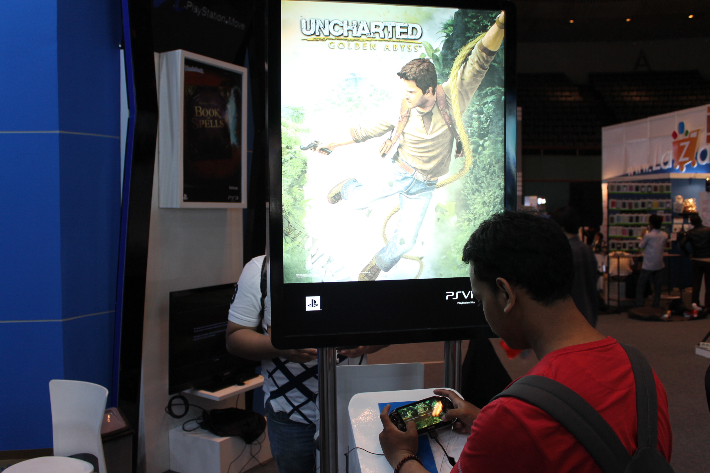 Selain kompetisi diatas, banyak berbagai stand yang sangat menarik dan bikin kita betah loh di JGS. Salah satu stand yang bikin saya betah adalah stand Sony Playstation. Perusahaan teknologi raksasa asal Jepang ini ikut serta meramaikan JGS 2012 loh. Disana mereka memberikan para pengunjung stand untuk bermain game terkenal secara gratis! Hebatnya lagi, bukan hanya kamu bisa bermain konsol Playstation 3 secara gratis, kamu juga bisa bermain konsol PS Vita juga loh secara puas.