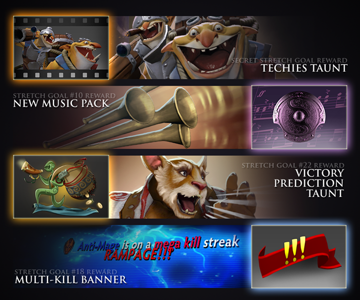 - Techies Taunt: Setiap kali kamu membunuh musuh menggunakan Bom Techies akan mengeluarkan tawa meledek.