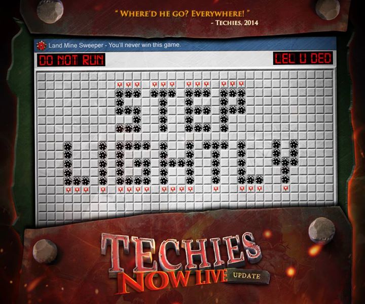 Update Techies hari ini pada Dota 2 Client sebesar 500mb+. Bagi anda yang memiliki kuota internet terbatas, mungkin update ini begitu menyesakkan tapi tentunya sebanding dengan kemunculan hero Techies.