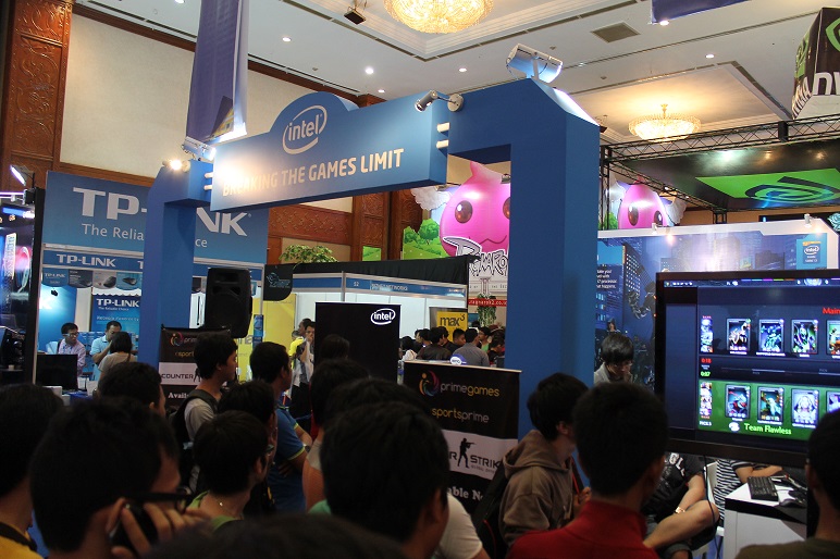 Tepat di Booth Intel yang berdekatan dengan panggung utama, turnament Dota 2 bisa kalian saksikan bresama teman kalian. Eits tapi awas karena saat ini para pengujung yang menonton turnament pun semakin ramai. Para team yang bertandingpun semakin seru. Terdapat 11 team yang tersisa untuk memperebutkan hadiah langsung dari Intel diantaranya adalah: