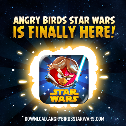 Setelah bulan lalu tepatnya awal Oktober 2012 Rovio memberikan bocoran berupa 1 buah screenshot yang misteriu, akhirnya Angry Birds : Star Wars hari ini resmi dirilis diseluruh dunia. Sebelumnya memang nih rovio hanya memberikan bocoran yang sangat minim mengenai gameplay dan perilisan game ini. Kabarnya Rovio tetap ingin membuat fansnya merasa penasaran tentang seri terbaru dari Angry Birds ini. Setelah beberapa wkatu lalu mendulang sukses dengan perilisan Bad Piggies, Rovio akhirnya ingin menaikkan pamor Angry Birds kembali ke puncak. Tepat pada hari ini juma't tanggal 9 November 2012, Rovio secara resmi telah merilis Angry Birds : Starwars.