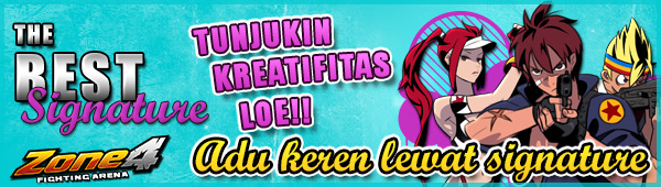 Lanjutan dari event quiz, Event The Best Signature ini KHUSUS untuk para peserta event Quiz Time! Jadi setiap kamu menjawab pertanyaan dari event Quiz, signature kamu juga akan selalu dinilai. Menang atau tidaknya kamu di event quiz tidak mempengaruhi penilaian event the best signature.