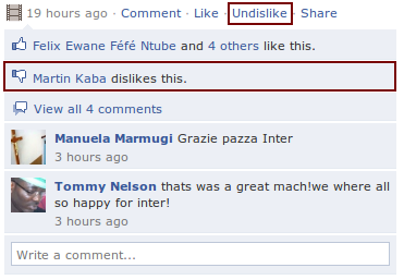 Facebook memang sudah menjadi tempat bagi semua lapisan masyarakat untuk menumpahkan segala jenis kegiatannya. Berkomunikasi, berbagi moment penting, berbagi foto-foto bahkan menghumbar suatu hubungan dengan pasangan kita. Well, selain menjadi media yang menjadi bagian dari hidup masyarakat saat ini, Facebook tentunya mempunyai beberapa fitur andalan yang sekarang fiturnya sudah diikuti banyak website yaitu tombol "Like". Yap tombol like ini tentunya suatu tombol facebook yang sangat unik dimana kita bisa mengungkapkan perasaan suka kita terhadap status seseorang. Well, tapi bagaimana jika kita tidak suka dengan status tersebut? Apakah tidak ada tombol "Dislike"?