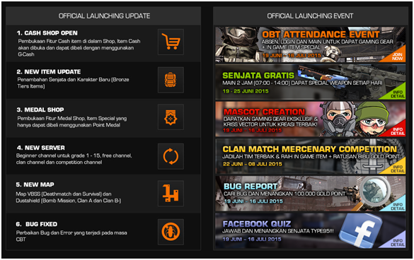 Tidak ingin biasa-biasa saja dalam official launching BlackSquad, Gemscool sudah mempersiapkan berbagai event yang tentunya mempunyai hadiah-hadiah keren, seperti: Logitech Gaming Gear (mouse, keyboard, headset), Gold Point, dan berbagai In-Game Item. Silahkan lihat dan ikuti update dan event yang digelar dalam menyambut official launching BlackSquad seperti di bawah ini: