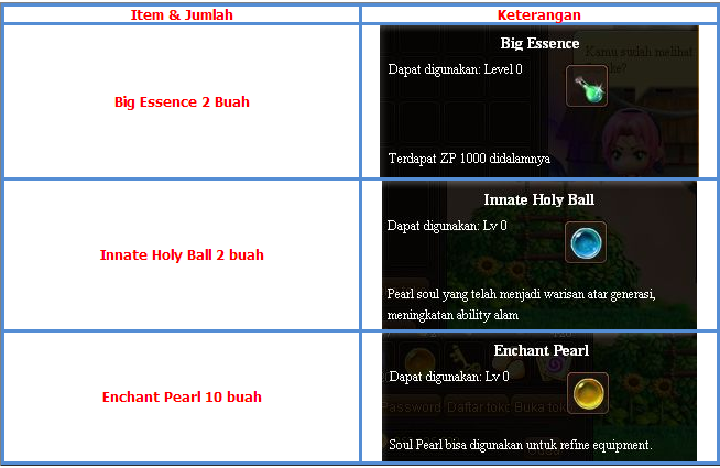 Seperti biasa, Bubble Ninja akan terus membagikan item gratis untuk kalian semua tiap minggunya. Item yang diberikan pun akan sangat berguna untuk kalian dalam berpetualang di dunia ninja dan semua item itu dibagikan secara gratis selama 7 hari berturut - turut !!Untuk 7 hari ini, Bubble Ninja Indonesia akan membagikan item Innate holy ball, Big Essence & Enchant Pearl!