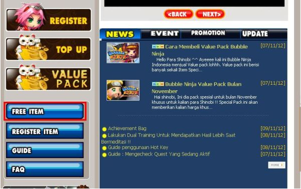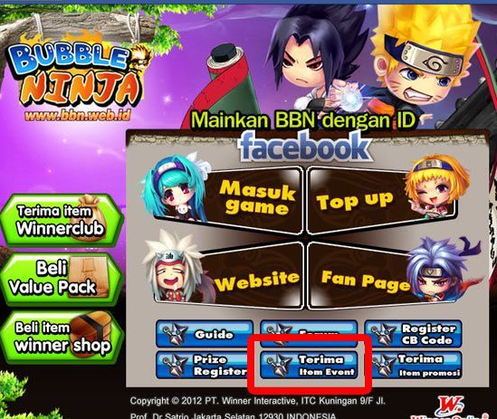 2. Untuk ID Facebook, bisa mengclick “Terima item Event” sebelum memainkan Bubble Ninja.