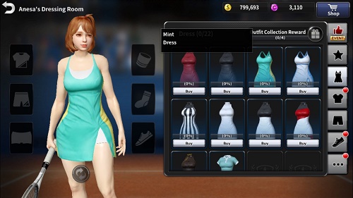 Di LINE Superstar Tennis, kamu dapat mengumpulkan atlit favoritmu serta melatih dan mendandaninya. Kamu dapat membuat sendiri seragam baru untuk atlit milikmu. Pilih [Closet] di menu, kumpulkan semua material dan biaya yang dibutuhkan utnuk membuat seragam baru. Jenis seragam yang bisa kamu pilih dalam Closet adalah Dress, Tops, Bottoms, Shoes dan Accessories, masih ada juga seragam khusus yang unik seperti Cheong-Sam. Kamu bisa mendandani sendiri atlit favoritmu dan membuat tim impian terhebat.