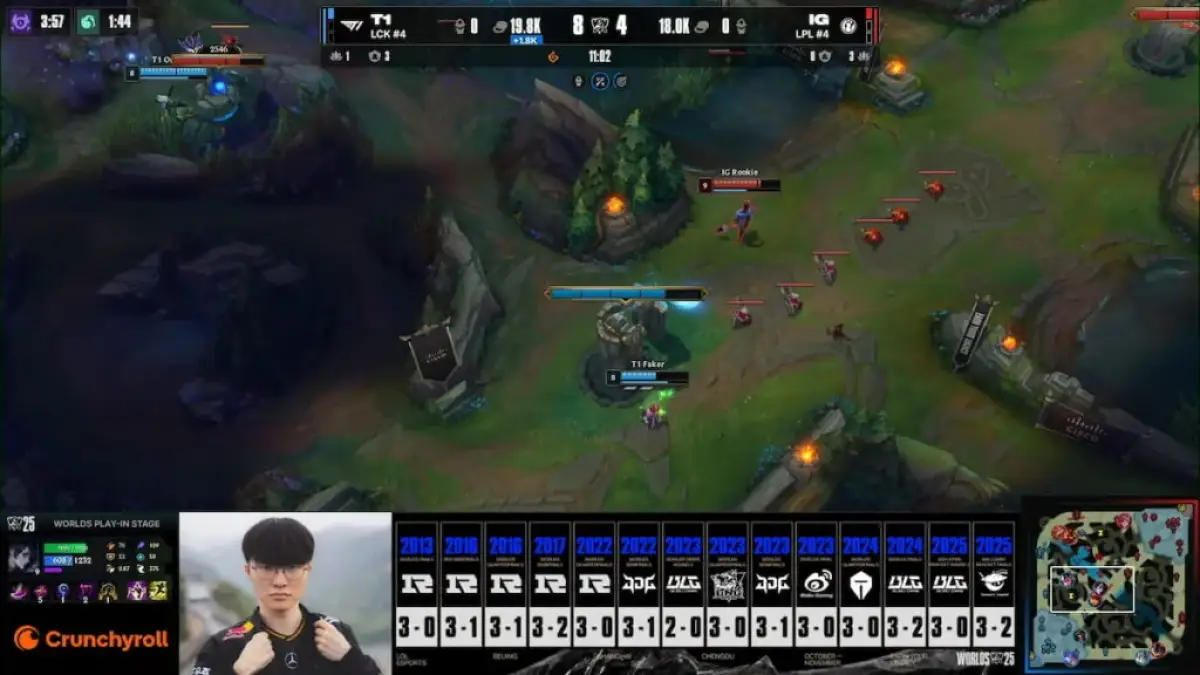 Game 1: T1 menang tipis setelah melakukan comeback yang rapi. Sempat tertinggal, T1 memanfaatkan kesalahan dive dari IG dan langsung mengamankan objective krusial.