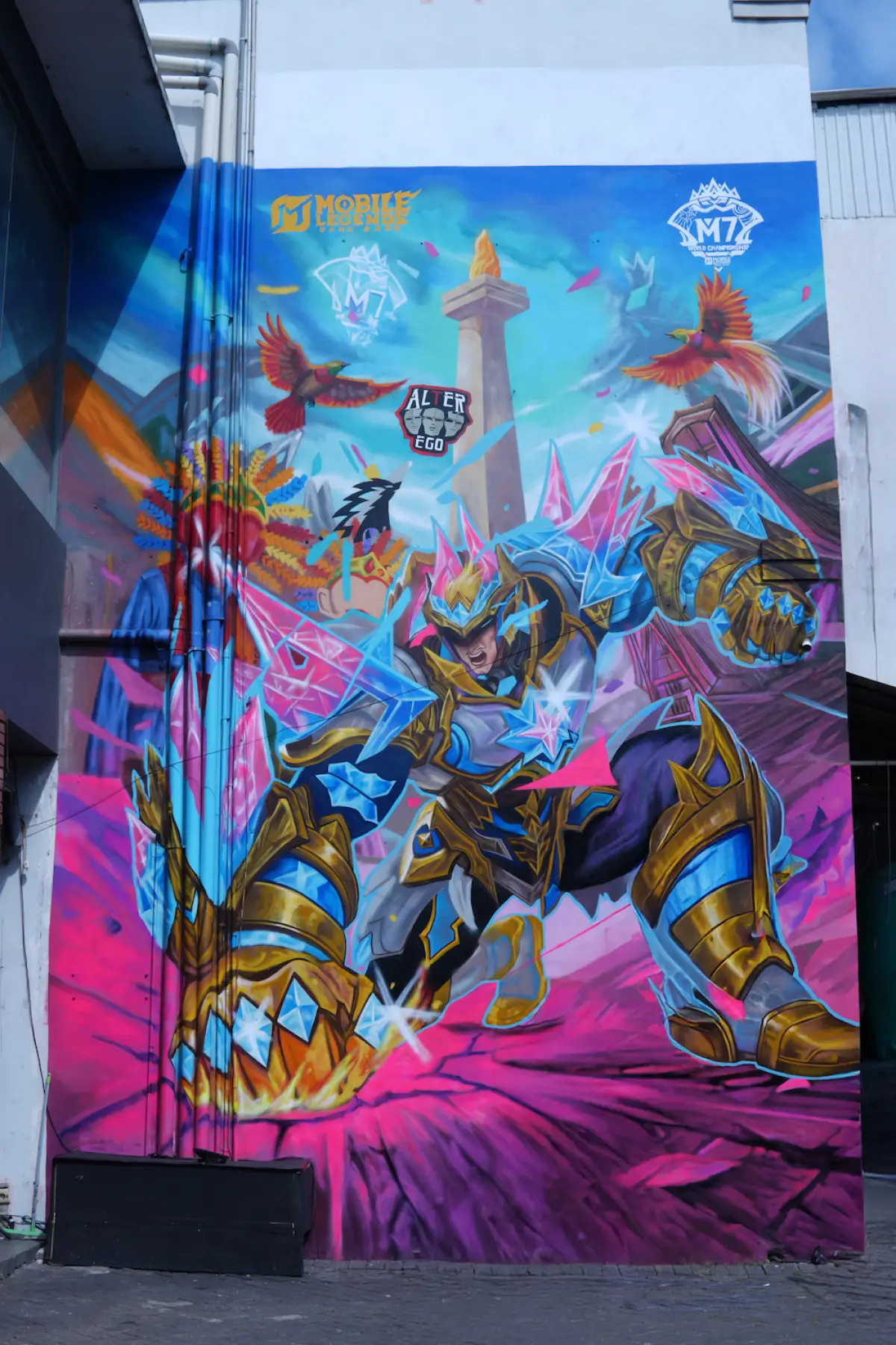 Selain itu, jalanan Indonesia disulap menjadi kanvas raksasa lewat proyek Mural Gatotkaca di 20 titik strategis, hasil karya seniman lokal yang menggabungkan seni jalanan dengan semangat esports.