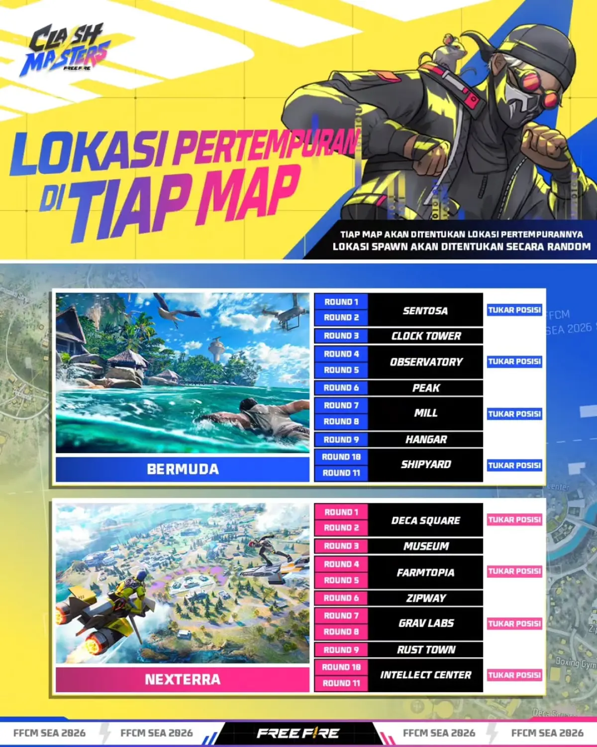 Indogamers.com – Garena baru saja mengungkap detail format pertandingan untuk ajang bergengsi Free Fire Clash Masters (FFCM) SEA 2026. Turnamen tahun ini membawa perubahan besar yang kualitas persaingannya bakal bikin kamu melongo secara gokil. Tidak hanya soal mekanik, strategi pengelolaan ekonomi dan penguasaan map kini menjadi bener-bener juara dan krusial. Yuk, kita bedah aturan baru yang bener-bener mantap ini!