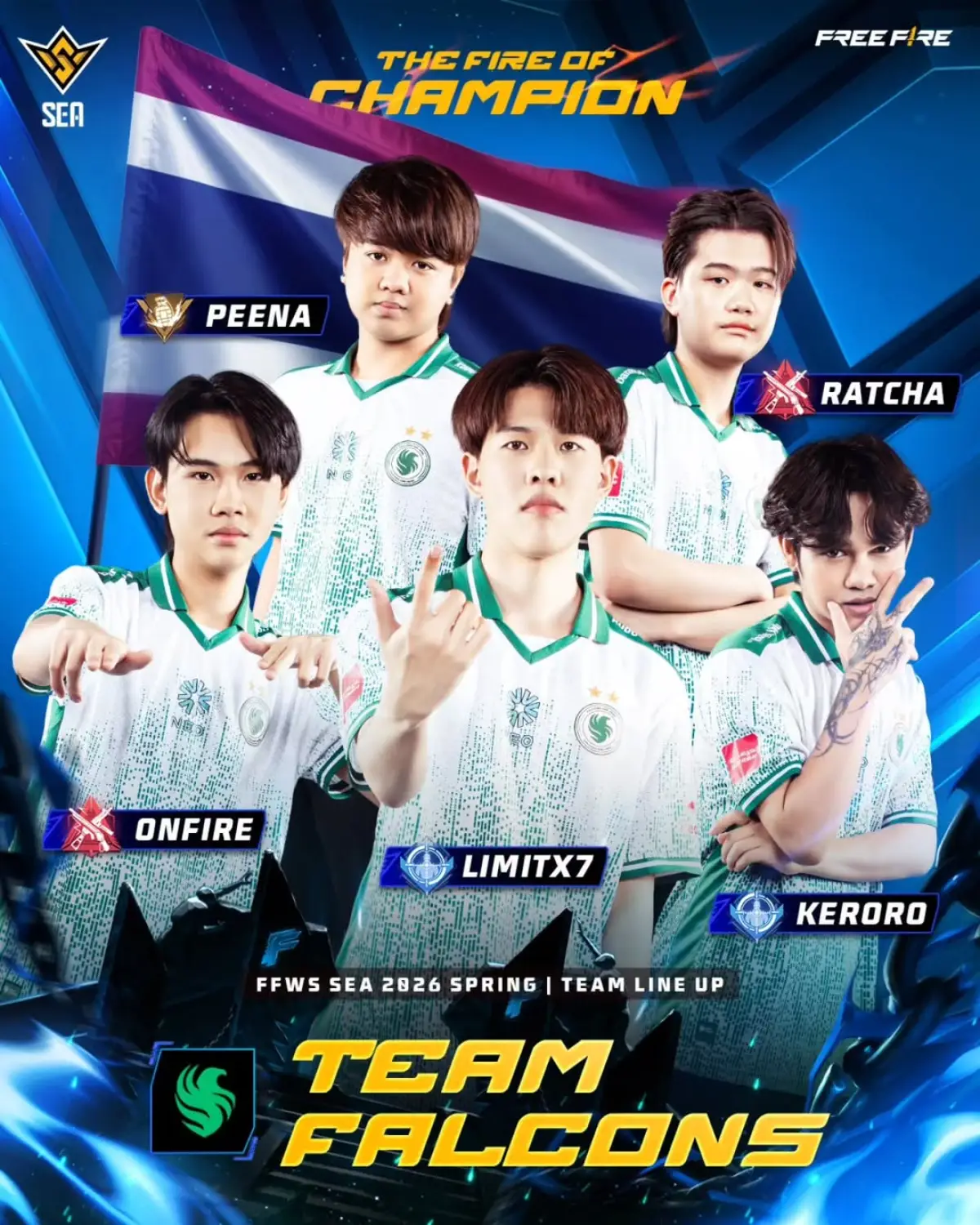 Tantangan di Grup C tidak berhenti pada masalah internal. Ketiga tim Indonesia ini harus berhadapan langsung dengan Team Falcons. Tim asal Thailand ini bukan sekadar peserta biasa; mereka adalah juara bertahan FFWS SEA musim lalu yang dikenal memiliki konsistensi luar biasa dan gaya permainan yang sangat disiplin.