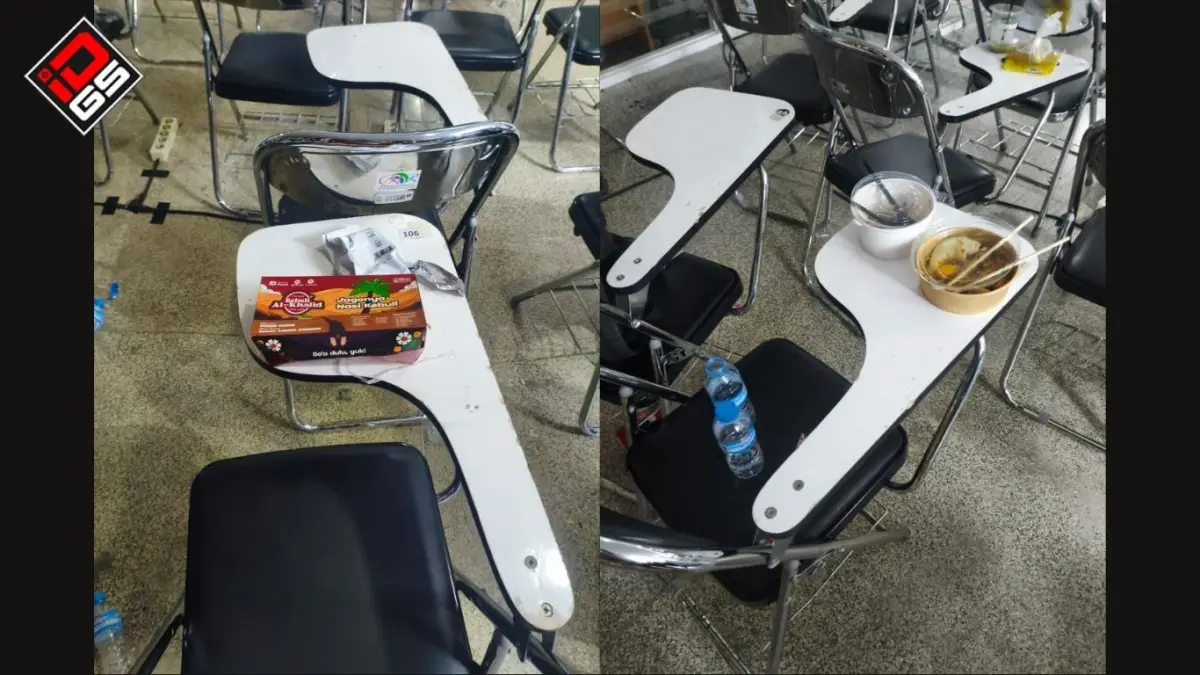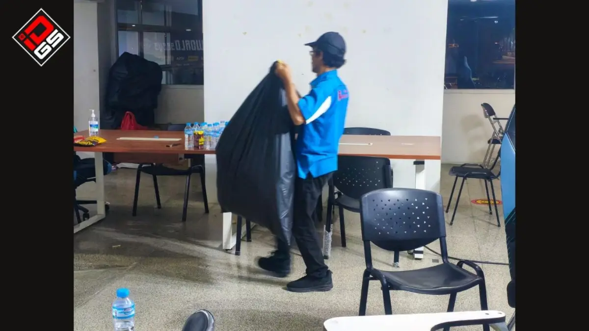 Salah satu titik yang sering kali menjadi ujian kesabaran bagi tim kebersihan adalah area-area operasional event M7. Di lokasi-lokasi yang menjadi pusat aktivitas internal ini, sampah sering kali ditemukan berserakan di meja kerja atau sudut ruangan. Tim harus berjibaku membersihkan beragam limbah konsumsi harian, mulai dari kotak makanan, botol plastik air mineral, hingga kaleng softdrink.