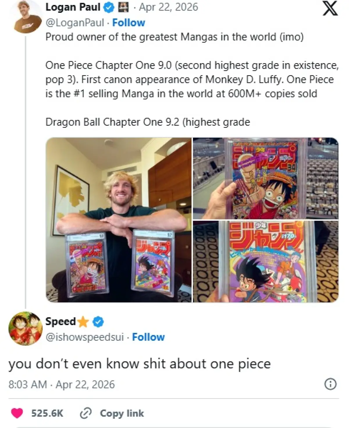 Komunitas manga meragukan apakah Logan benar-benar mencintai karya tersebut atau hanya sekadar menjadikannya aset spekulasi. Streamer IShowSpeed bahkan menyindir langsung dengan mengatakan, "Kamu bahkan tidak tahu apa-apa soal One Piece."