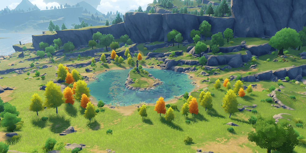 Starfell Lake, lokasi dari salah satu Statue of the Seven di Mondstadt. (miHoYo/Genshin Impact)