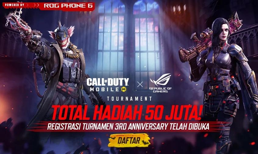 Garena akan menggelar Turnamen 3rd Anniversary Call of Duty: Mobile (CODM) x ROG Phone 6. Turnamen ini terbuka untuk seluruh pemain di Indonesia dan menghadirkan total prize pool Rp50 juta dan 200.000 CP.