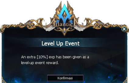 Selain Bonus EXP diatas, kalian juga bisa mendapatkan tambahan EXTRA 10% EXP setiap karakter kalian naik level.