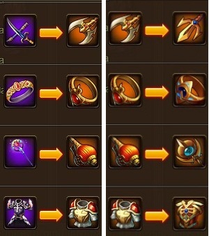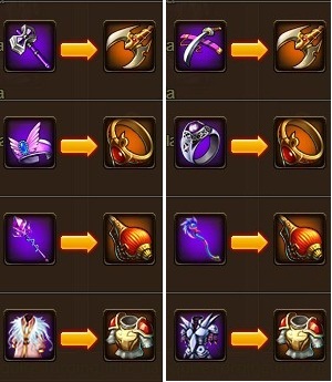 Update kali ini akan membawa kamu ke tambang batu dari All Blue. Bebatuan permata ini dapat mengubah Equipment kalian ke tingkat berikutnya yang lebih tinggi dari Purple Equipment yaitu level Orange Equipment. Berikut adalah gambar Equipment Purple yang dapat diubah ke Equipment Orange :