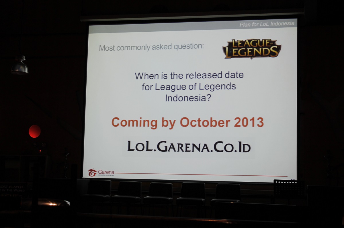 Jakarta 25 Juli 2013, Garena Indonesia mengadakan acara buka puasa bersama sekaligus mengumumkan tentang peluncuran League of Legends untuk Indonesia. Dengan mengambil tempat di Nutz Culture, Senayan City, Garena yang merupakan salah satu pemimpin dari online game dengan jumlah user yang tidak sedikit, akhirnya memberitahukan apa yang menjadikan rasa penasaran gamers tentang perilisan untuk game dengan genre MOBA, League of Legend versi Bahasa Indonesia.