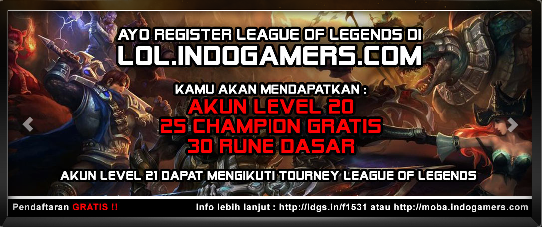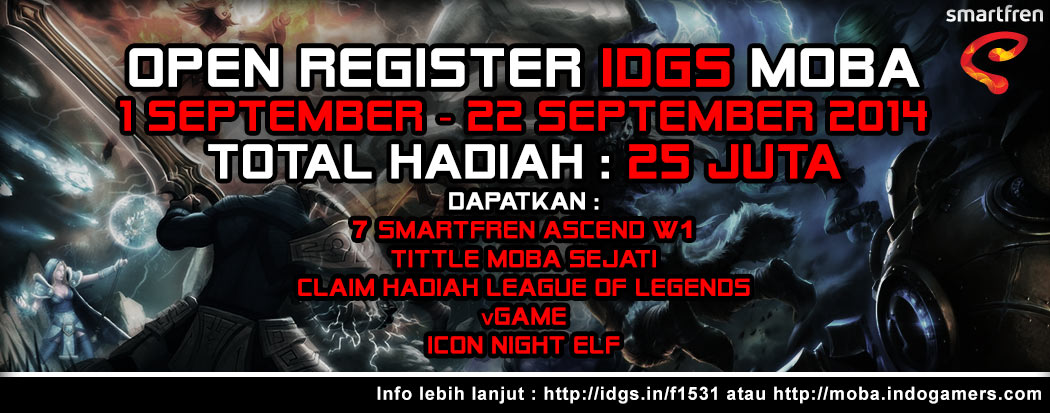Indogamers kembali mengingatkan kepada setiap gamers yang ada di sini untuk ikut mendaftar sebuah turnamen dengan title pemain game MOBA sejati. Pemberitaan ini secara terus-menerus akan dipublikasikan melalui portal Indogamers mengingat hadiah yang diberikan memang cukup menarik. Kesempatan untuk menang pun bisa semakin besar, terlebih lagi pembagian kategori hadiah juga terbilang banyak.