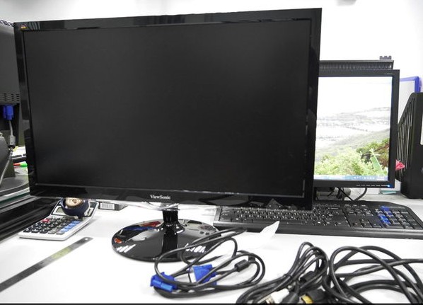 Perbandingan ukuran yang lebih jelas antara monitor lawas berukuran 20” dengan monitor ViewSonic 24” yang jauh lebih besar.