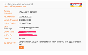 2. Ketika kalian Isi ulang menggunakan voucher UniPin, kalian akan mendapatkan notifikasi tentang Big Bonus 100.