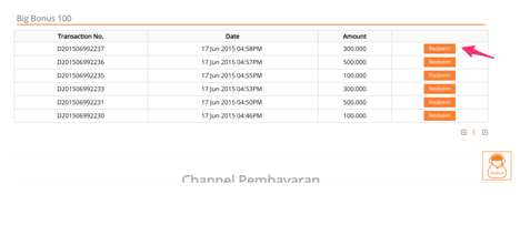 3. Untuk mengambil bonus, silahkan klik tombol “redeem” dari event Big Bonus 100 di URL link notifikasi tersebut ataupun di gambar kado di home.