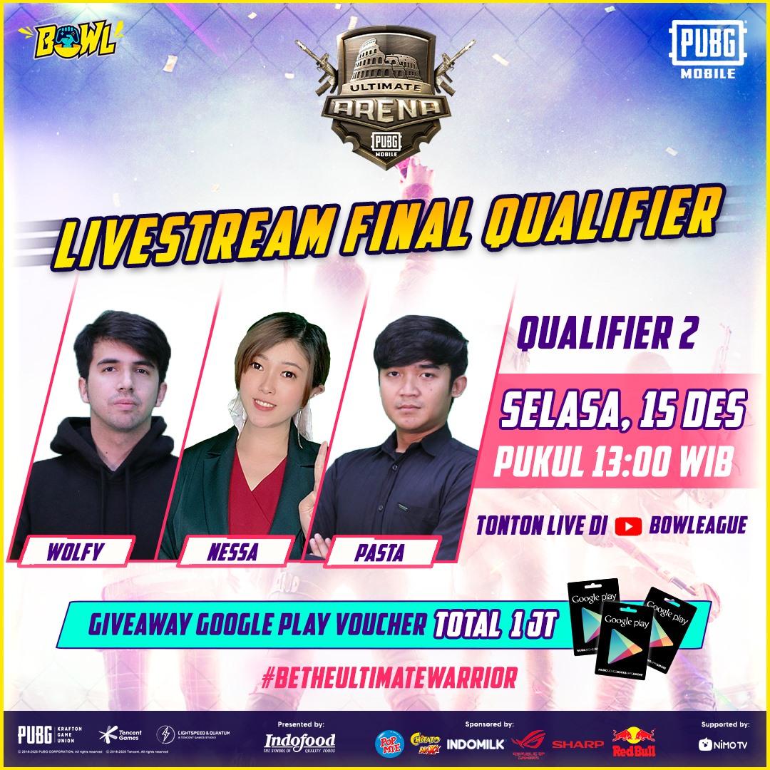 Untuk informasi mengenai turnamen dan giveaway di UA:PUBGM kunjungi media sosial Battle of Warriors League di Facebook & Instagram. Turnamen Ultimate Arena: PUBGM kali ini dipersembahkan oleh Indofood, disponsori oleh Chitato Maxx, Indomilk, Pop Mie, dan didukung oleh, NimoTV, Redbull Gold dan SHARP. Serta didukung oleh ROG Phone 3 dengan spesifikasi hebat yang menetapkan standar baru untuk game seluler!