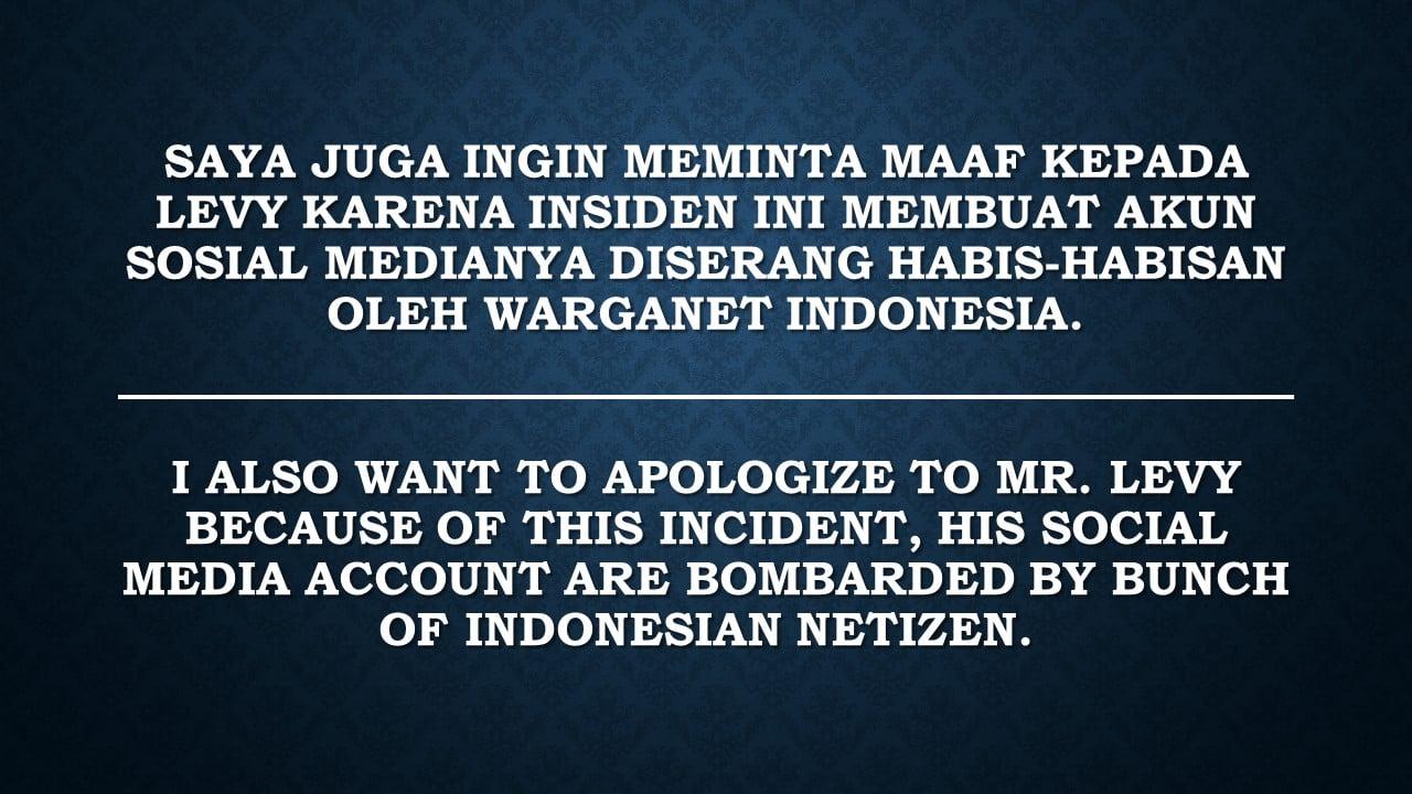 Levy juga disebut Akbar sudah meminta maaf secara pribadi kepada Dewa Kipas. (Facebook/Ali Akbar)