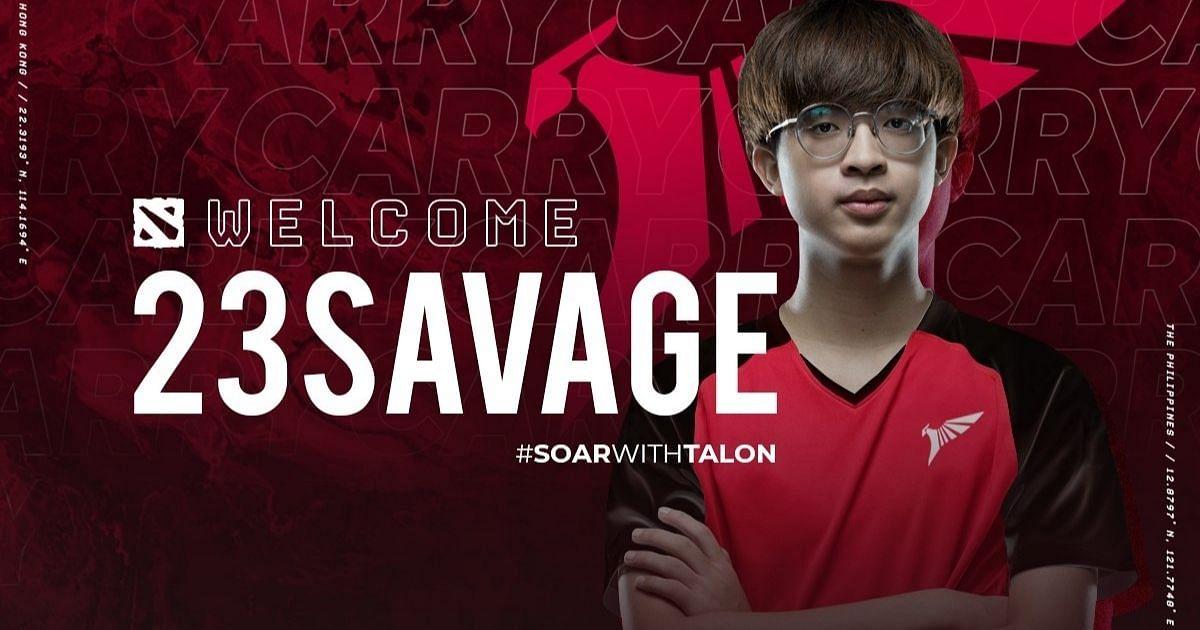 IDGS, Sabtu, 26 Februari 2022 - Kedatangan 23savage itu hanya berselisih satu hari dengan perekrutan Worawit "Q" Mekchai dari Motiave.Trust Gaming yang didatangkan untuk menggantikan posisi Tal "Fly" Aizik yang cabut dari Talon pada 19 Januari 2022, seiring dengan kegagalan Talon promosi ke Divisi I Liga DPC SEA pada Tour 1.Dengan begitu, roster Talon Esports pun telah lengkap dan hanya tinggal menyisakan pelatih yang akan diumumkan besok.